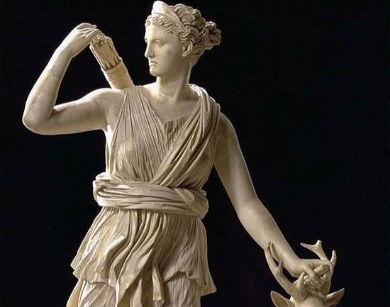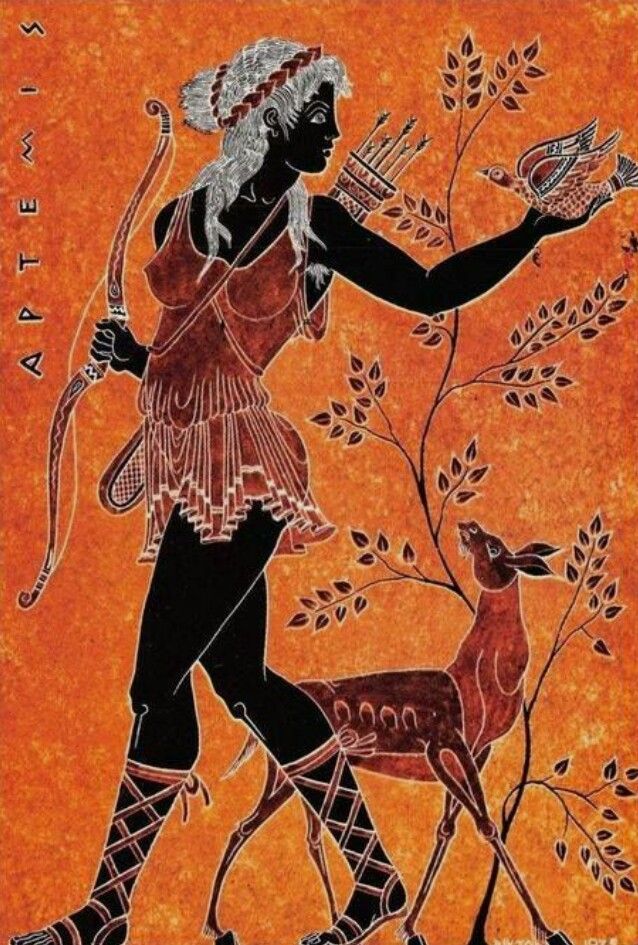 Artemis was één van de Olympische goden, dochter van Zeus: koning van de goden. Zij was de godin van de jacht en de wildernis, en werd vaak afgebeeld met pijl en boog. Maar ook alles rondom geboorte viel onder haar heerschappij. In sommige mythen over haar eigen geboorte wordt verteld dat Artemis haar moeder hielp bij de bevalling van haar tweelingbroer Apollo.