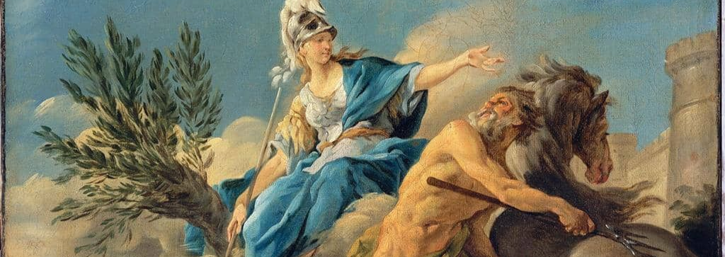One of the most famous myths about Athena tells how she became the patron goddess of the city that would eventually bear her name: Athens. The battle for this honor was between Athena and her uncle Poseidon, god of the seas. Both offered the city a gift to secure their dominance. Poseidon struck the ground with his trident, creating a saltwater spring. Athena donated the first olive tree, a tree of great significance in the Mediterranean and a symbol of peace. Thanks to this gift, Athena was chosen as the patron goddess of the city, which has been known as Athens ever since.